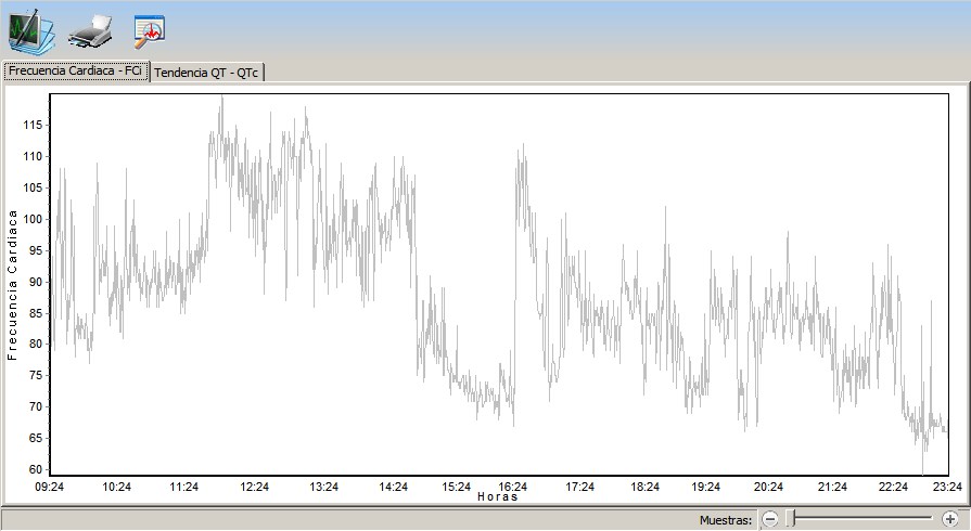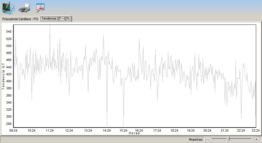 Graficas de Tendencia: Frecuencia Cardíaca Instantanea y Periodo QT Corregido.